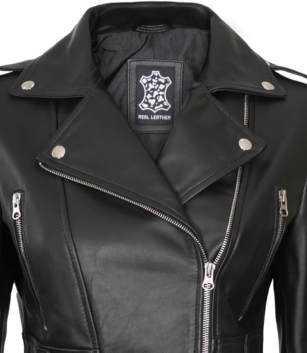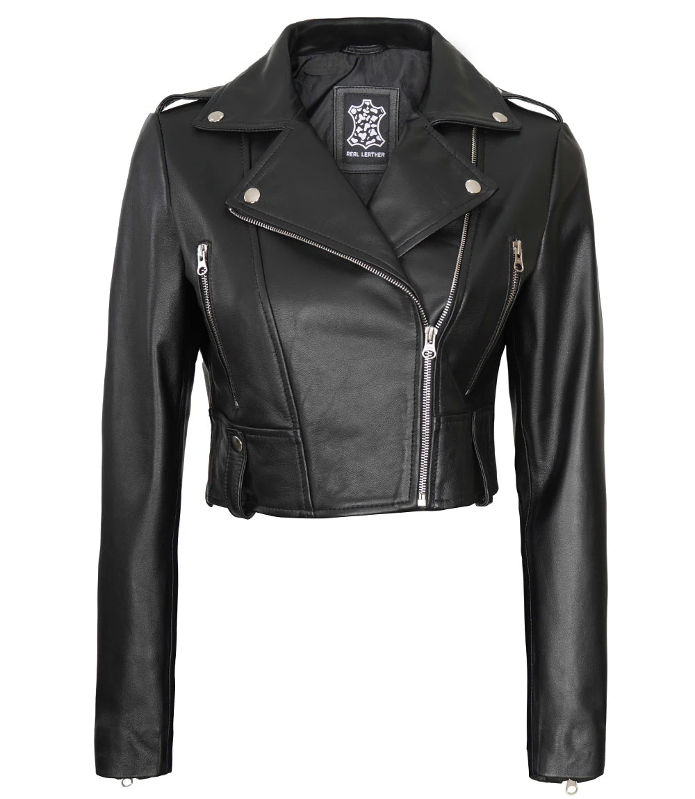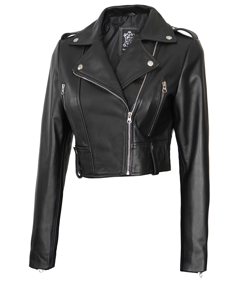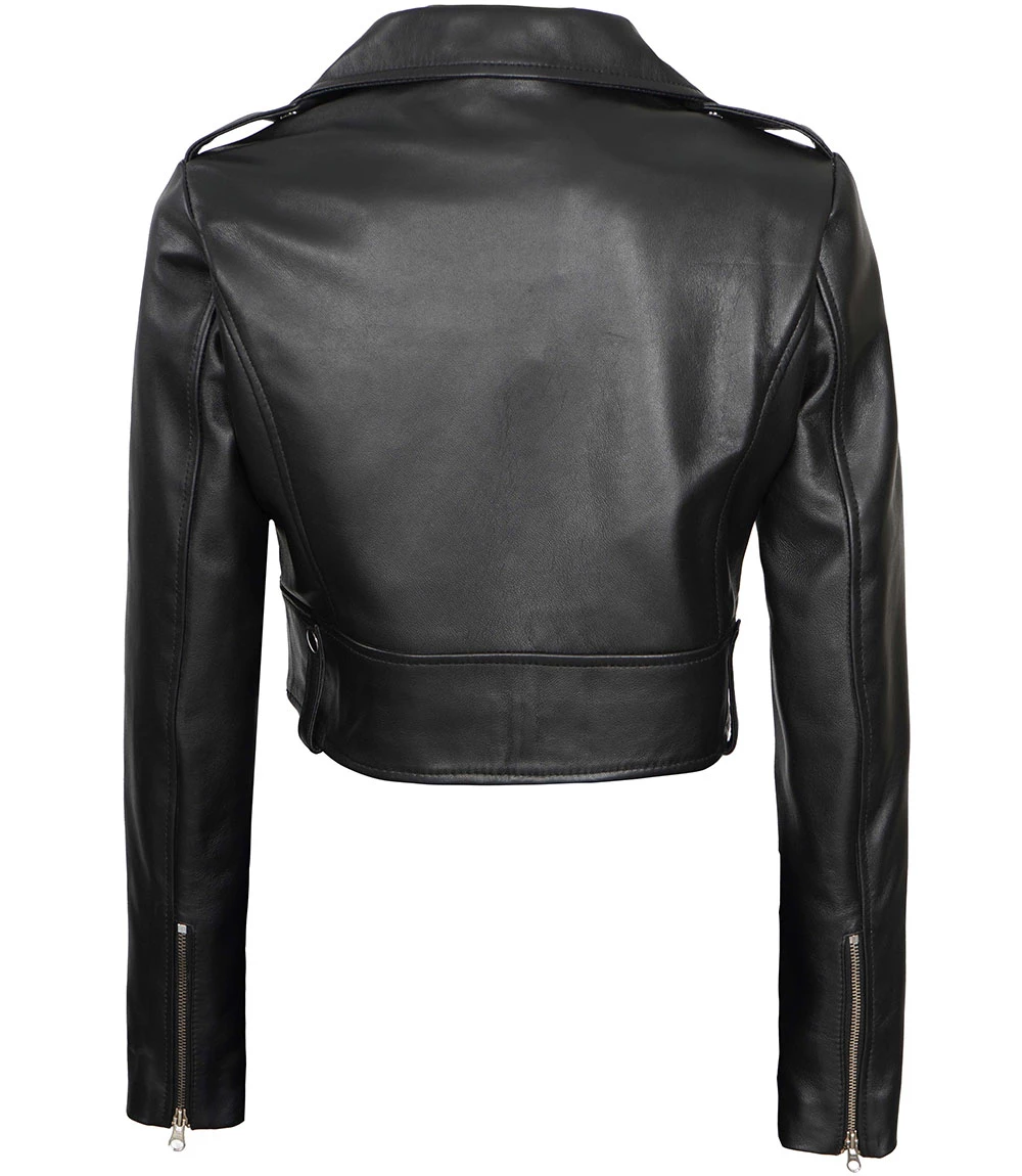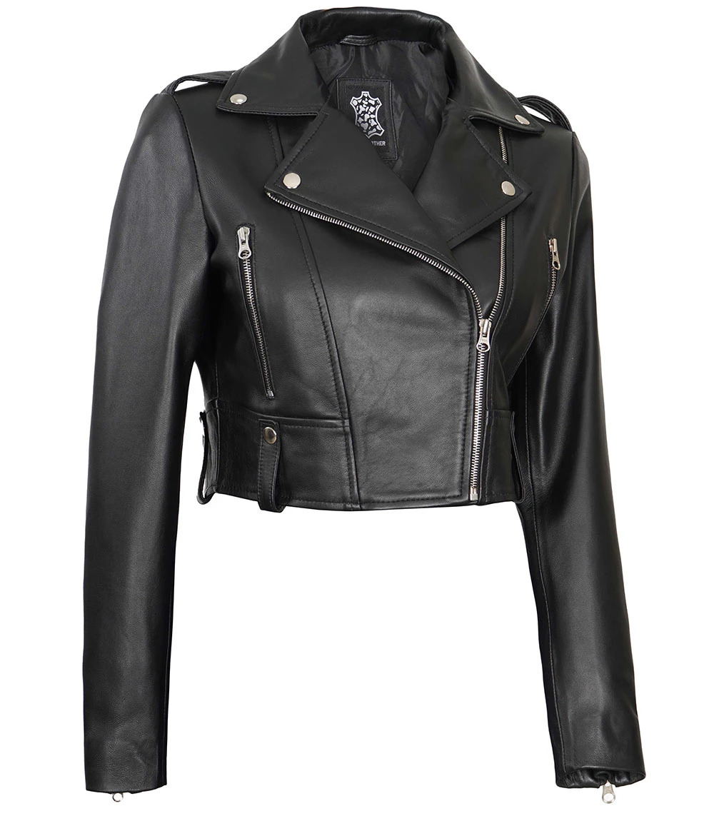 Women's Black Cropped Leather Biker Jacket - Moto Style