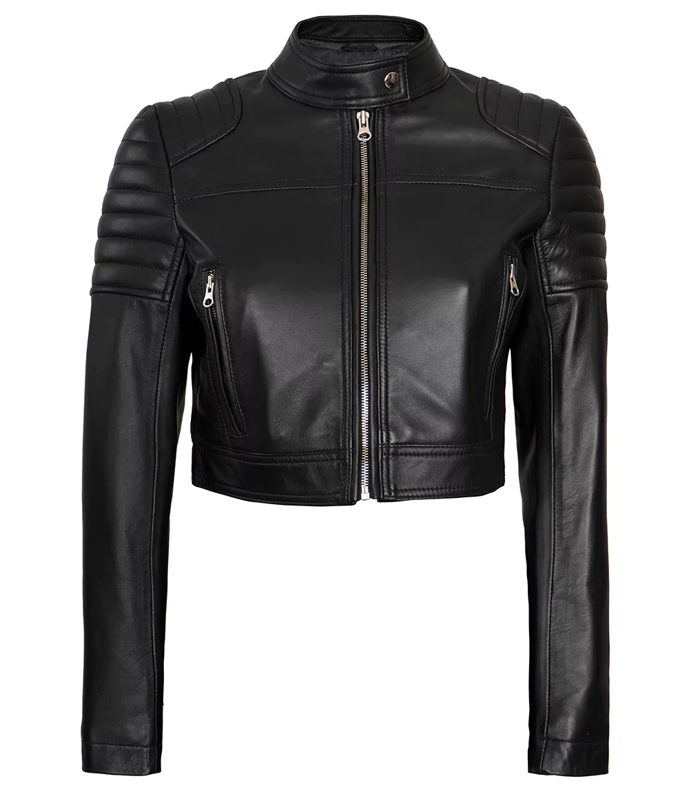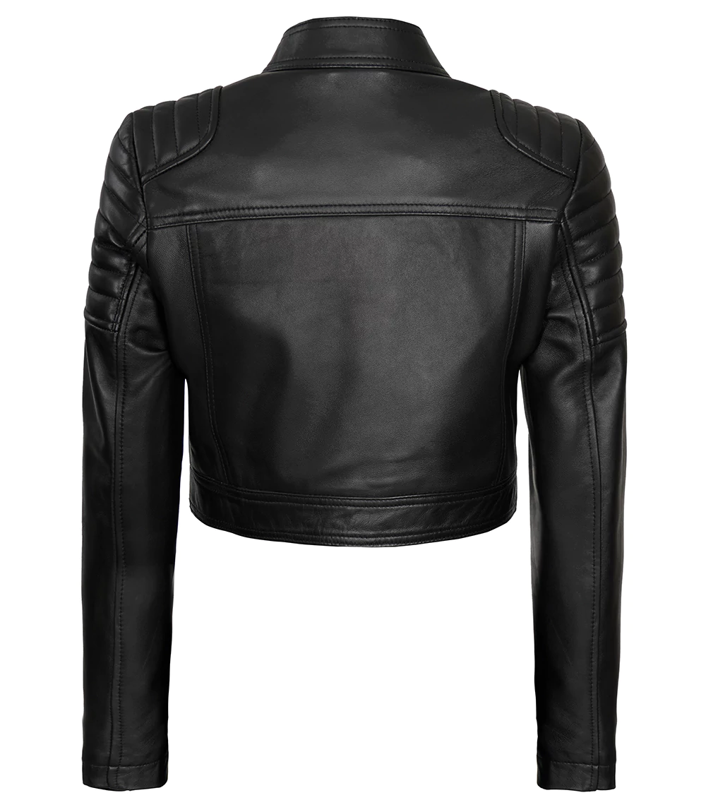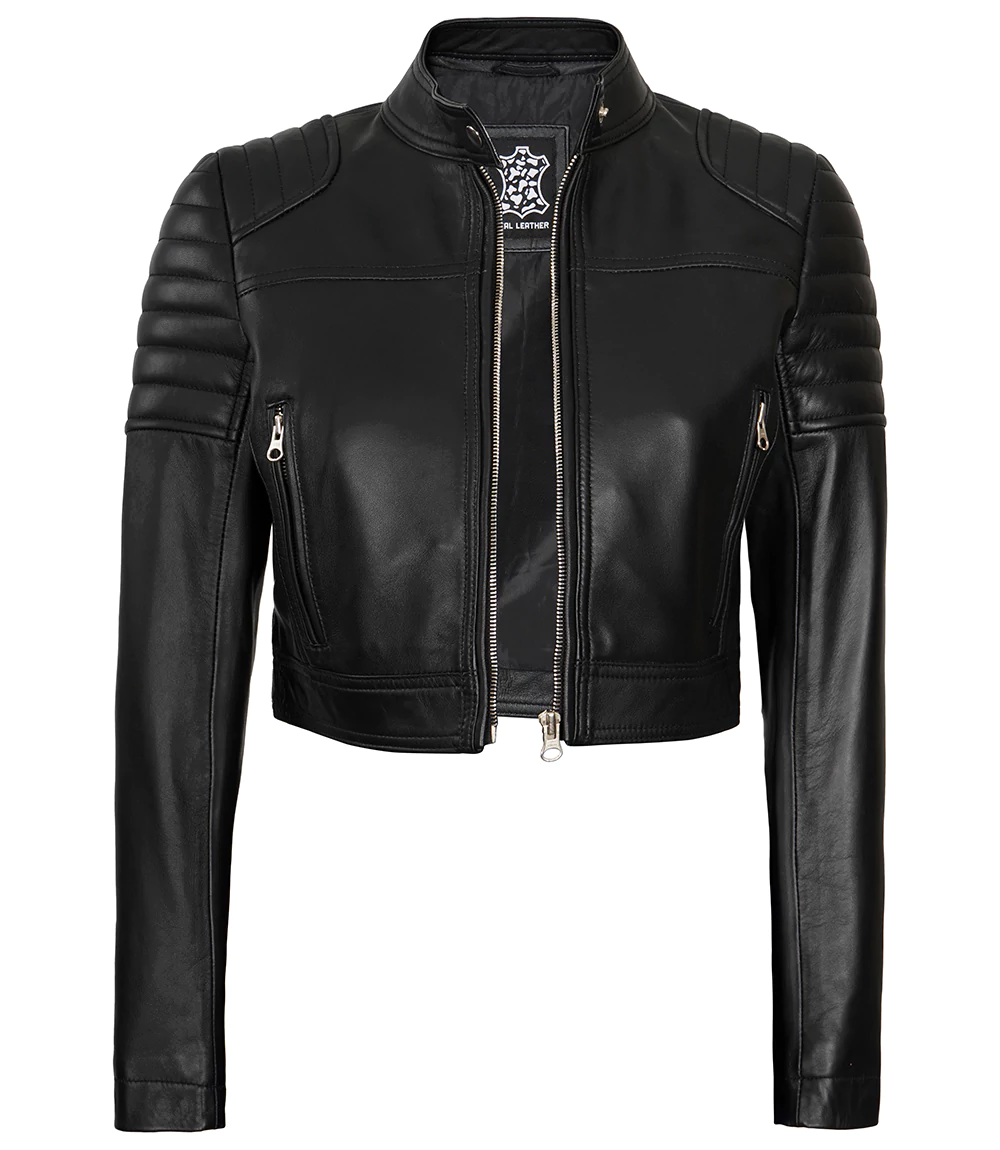 Dive into the world of contemporary fashion with the Womens Black Cropped Leather Moto Jacket. Designed for the modern woman who values both style and comfort, this jacket combines the classic appeal of leather with a trendy cropped silhouette.